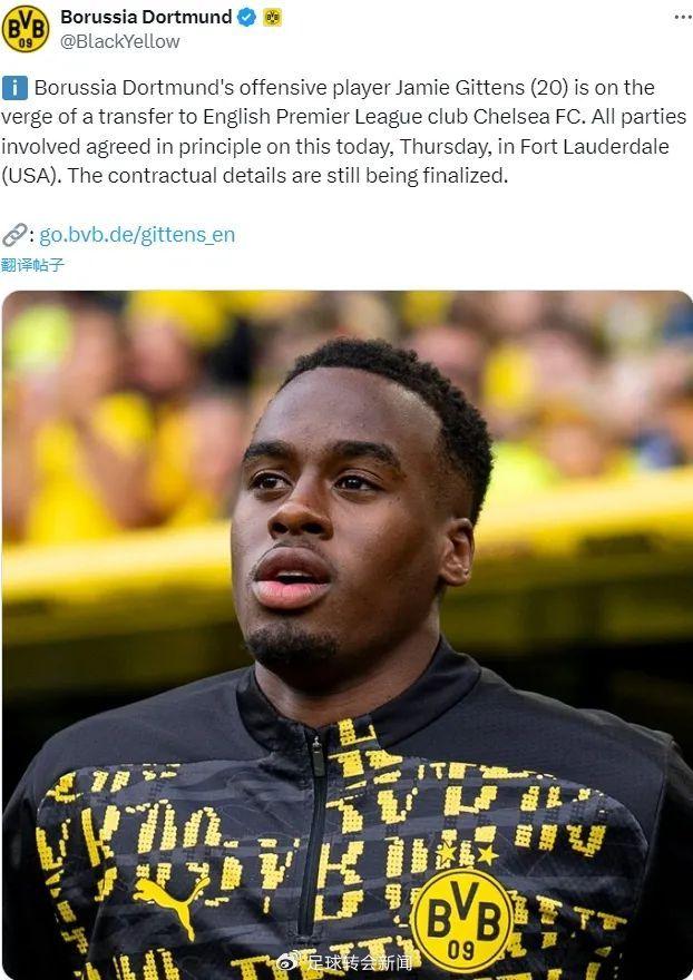 官方:多特蒙德宣布吉滕斯即将加盟切尔西,各方在周四基本上达成了原则性协议。